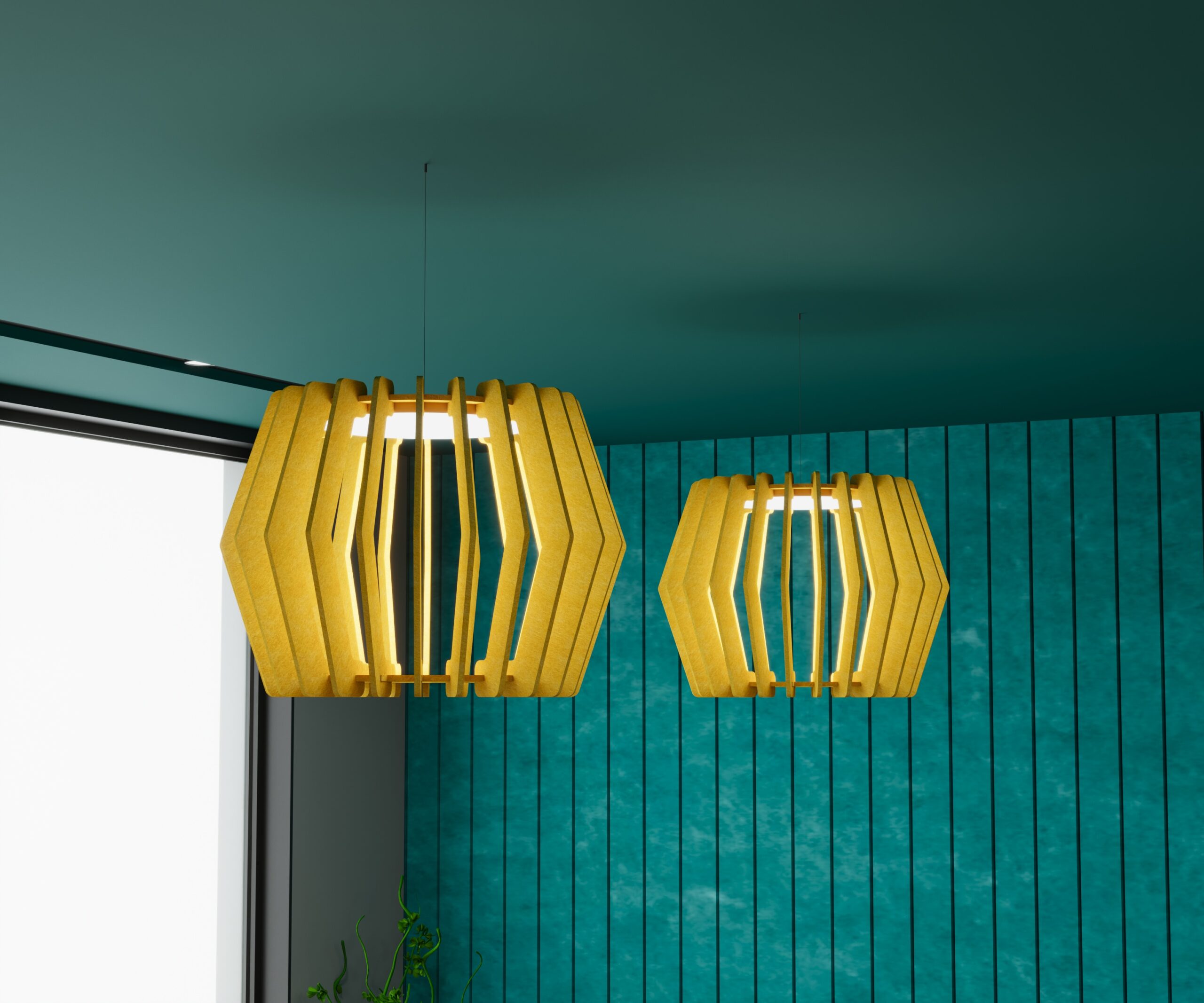 Inspired by the playful shape of a pumpkin, this light casts a soft, ambient light that enhances the mood of any room. Its curved, segmented design not only visually appeals but also incorporates sound-absorbing materials, helping to reduce noise and create a quieter, more comfortable environment. Ideal for settings like children’s rooms, creative spaces, or cozy cafes, the Pumpkin Light brings a joyful presence wherever it is placed.